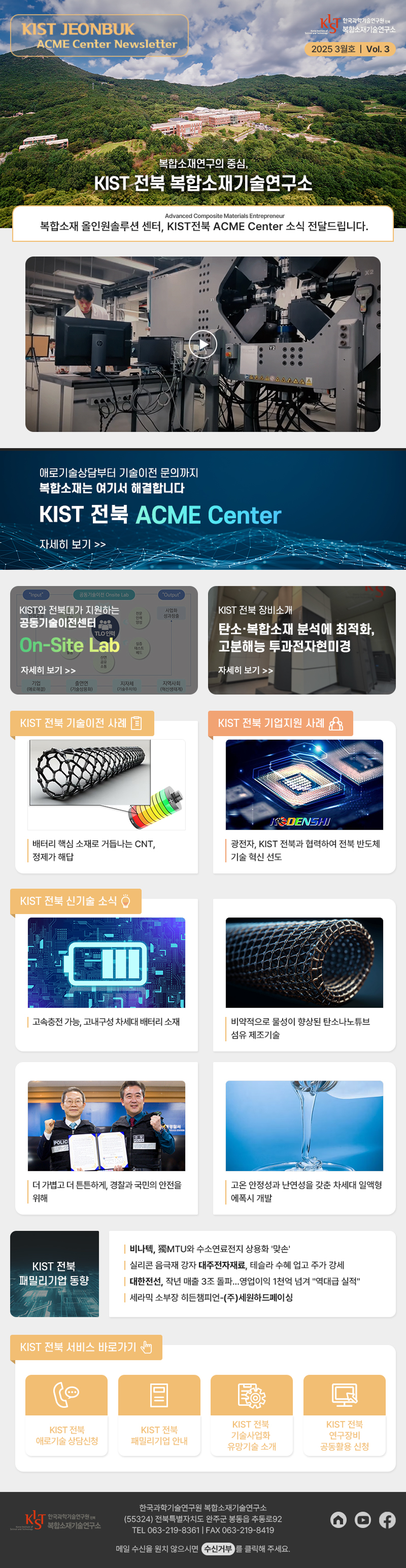 국내 복합소재 연구개발과 기술이전 중심기관으로서, 산업 전주기 기술지원을 수행하는 KIST 전북 ACME Center의 성과와 현황을 알리는 기술기반 뉴스레터