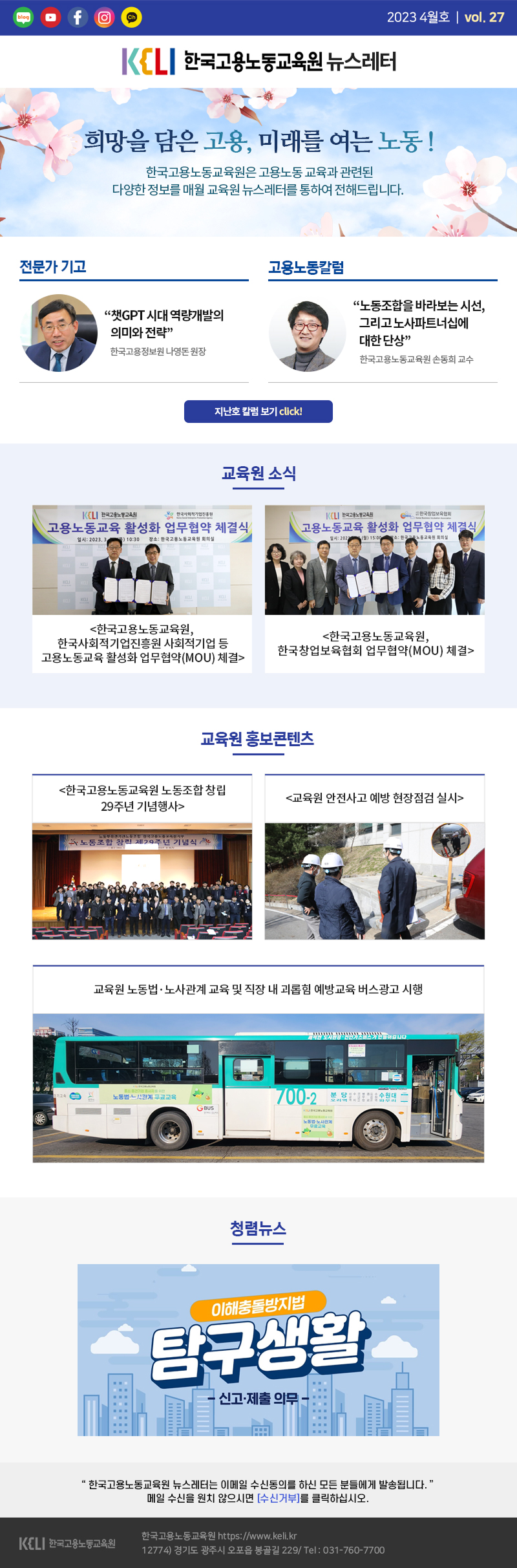 노동 관련 교육 프로그램과 정책 해설을 통해 근로자와 기업을 지원하는 뉴스레터
