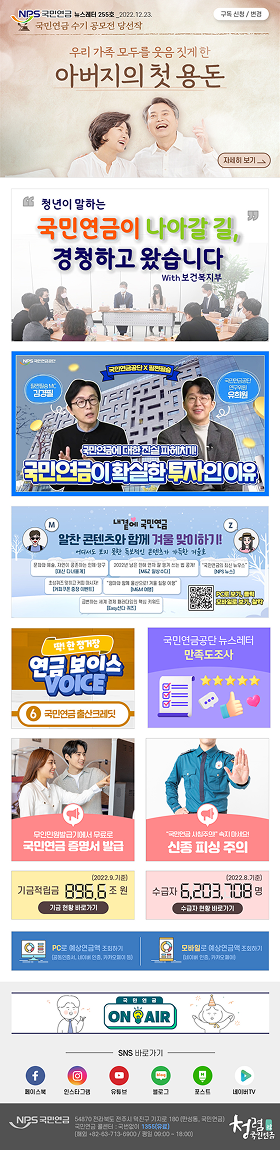 가입자와 수급자를 위한 국민연금 제도, 정책, 일상 콘텐츠를 전달하는 공감 뉴스레터