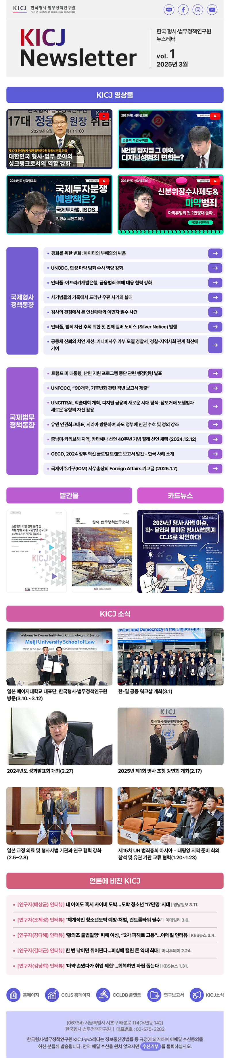 국내외 형사정책 동향, 영상자료, 연구성과, 국제협력 사례까지 담은 전문 정책 뉴스레터